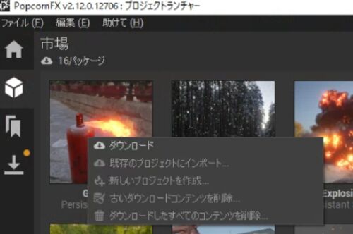 初めに 前回 bravememo.hatenablog.com 環境は PopcornFX 2.12.0.12706で日本語に翻訳した状態です ライセンスはProfessionalです やり方 ダウンロード まずはマーケットを開いてサンプルを右クリックでダウンロードを選択してダウンロードします。 ダウンロ…